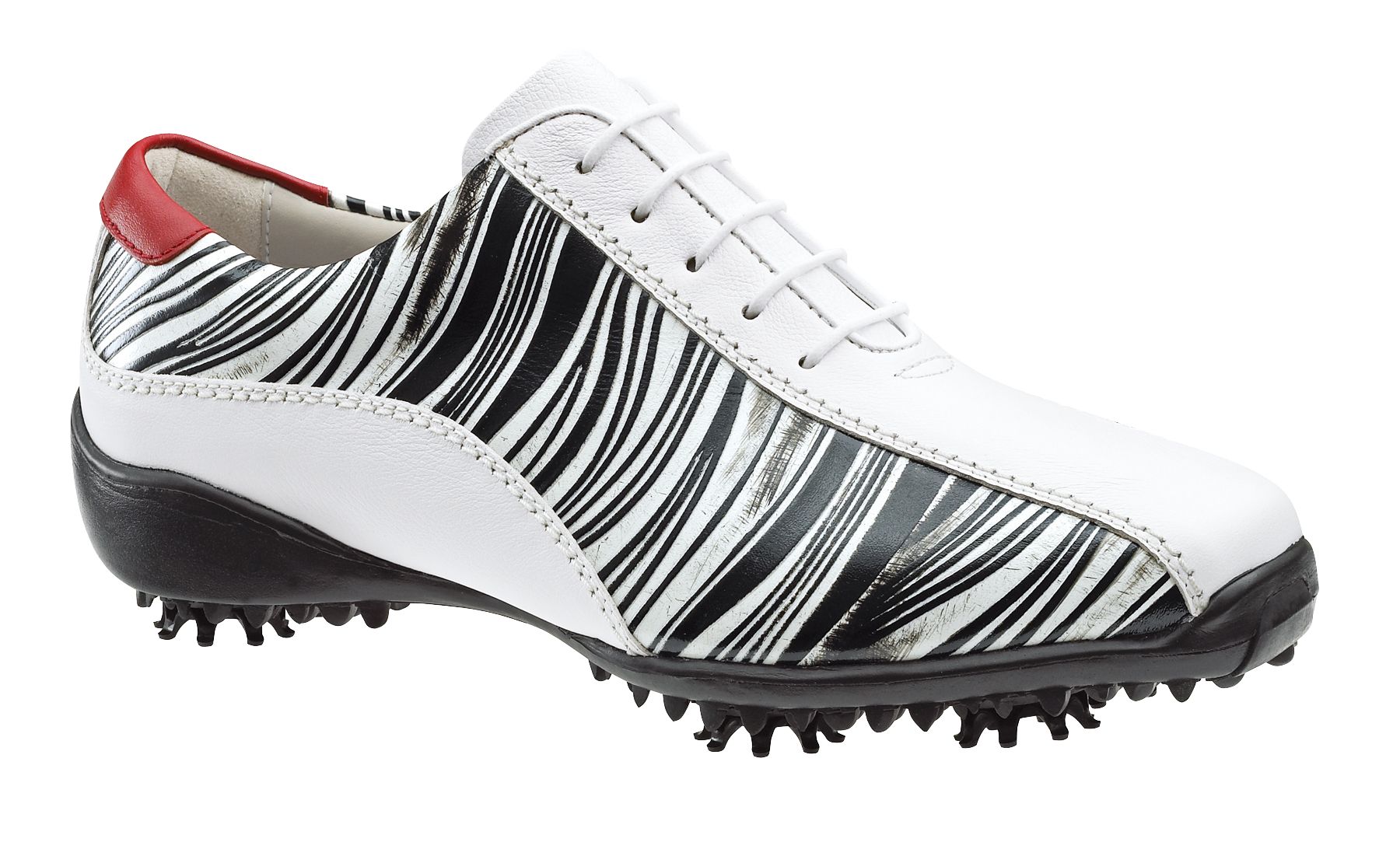 Footjoy Women S Lopro Zebra Print Golf Shoe Black White Red.